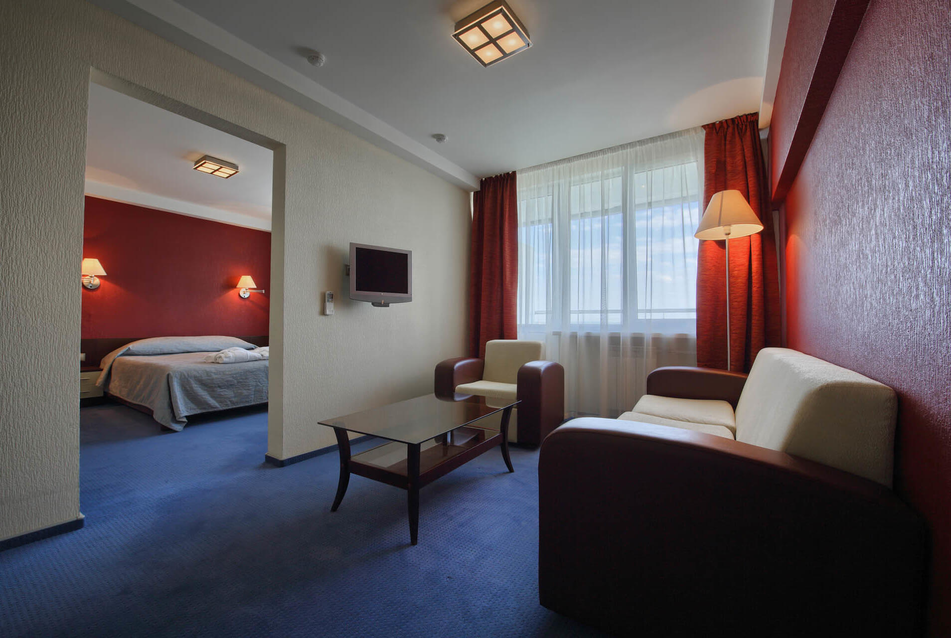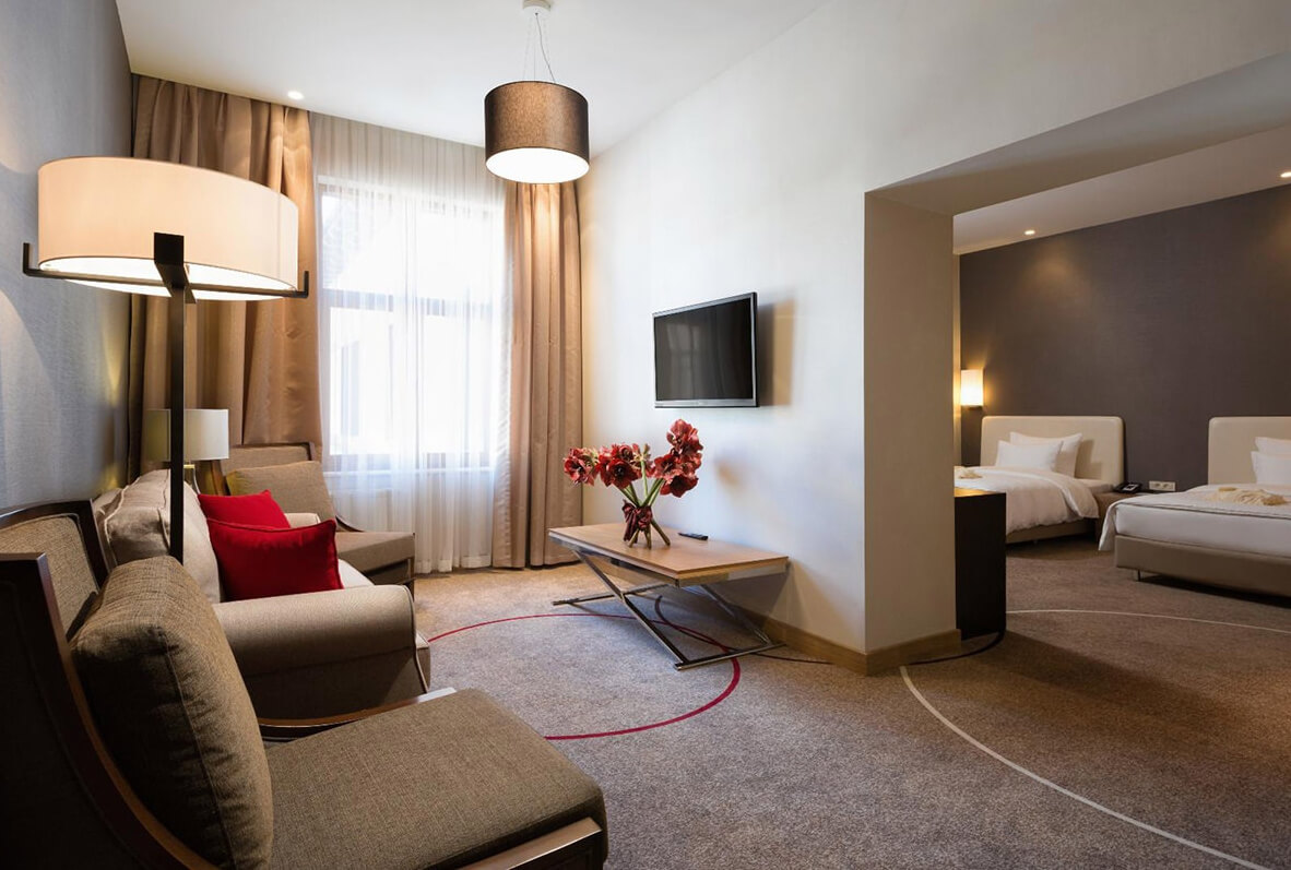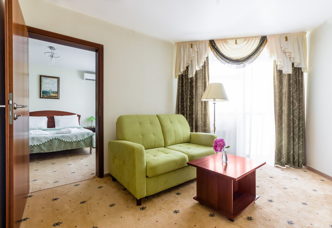 Двухкомнатный номер удобно поделен на зоны, прекрасный вариант для размещения до 5 гостей. Максимальная вместимость 5 человек. В номере имеется балкон.