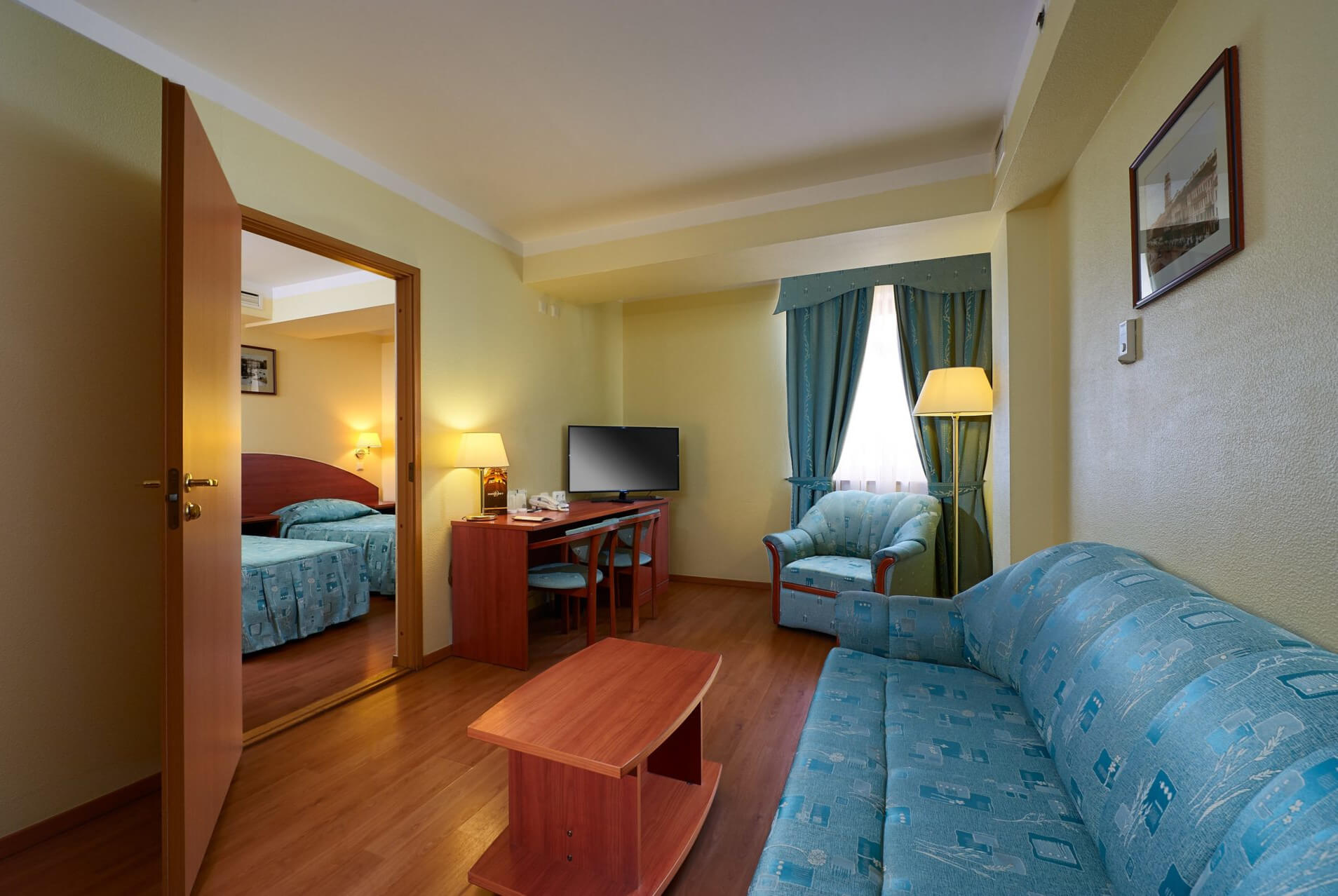 Комфортабельный 2-комнатный номер, прекрасный выбор для отдыха до 5 гостей. Вас ожидает уютный номер с 2мя комнатами, просторными спальнями, санузлом и балконом.